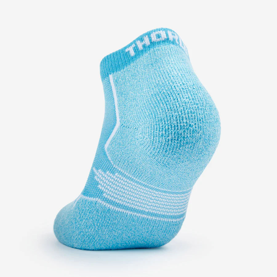 Avec le logo Thorlo inscrit au dos du mollet, ce modèle crew assure un maintien accru et une couverture plus grande que la version ankle. Le rembourrage au-dessus des orteils protège efficacement lors des arrêts rapides et des mouvements latéraux, tandis que la maille technique favorise une excellente respirabilité pour garder vos pieds au frais et au sec.
