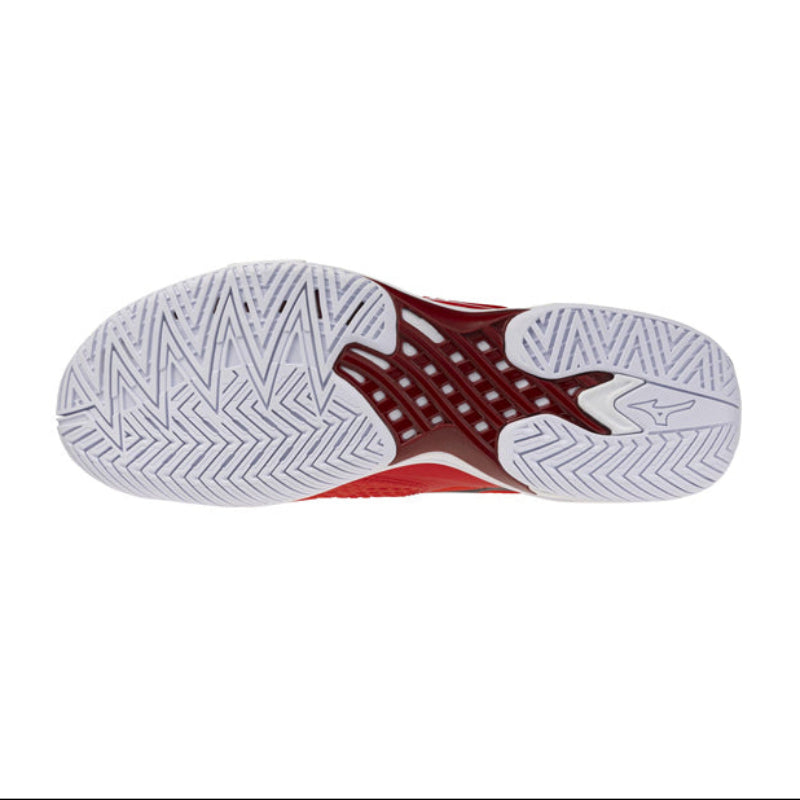 La plaque MIZUNO WAVE®, combinée à la technologie D-Flex Groove, améliore la stabilité latérale et transforme la puissance des appuis en mouvements rapides et fluides autour du court. Cette conception favorise des transitions explosives et un contrôle précis lors des changements de direction.