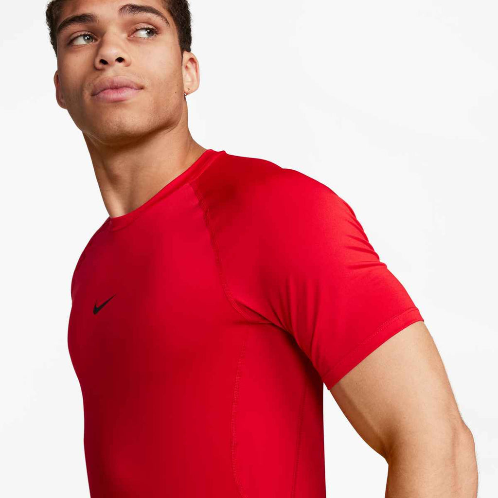 Le haut à manches courtes Nike Pro est conçu pour offrir une sensation de seconde peau tout en assurant une liberté de mouvement optimale. Grâce à sa coupe ajustée et à sa matière douce et extensible, il procure un confort exceptionnel pendant l'entraînement ou la compétition. Parfait pour les activités sportives intenses ou les séances d'entraînement régulières.