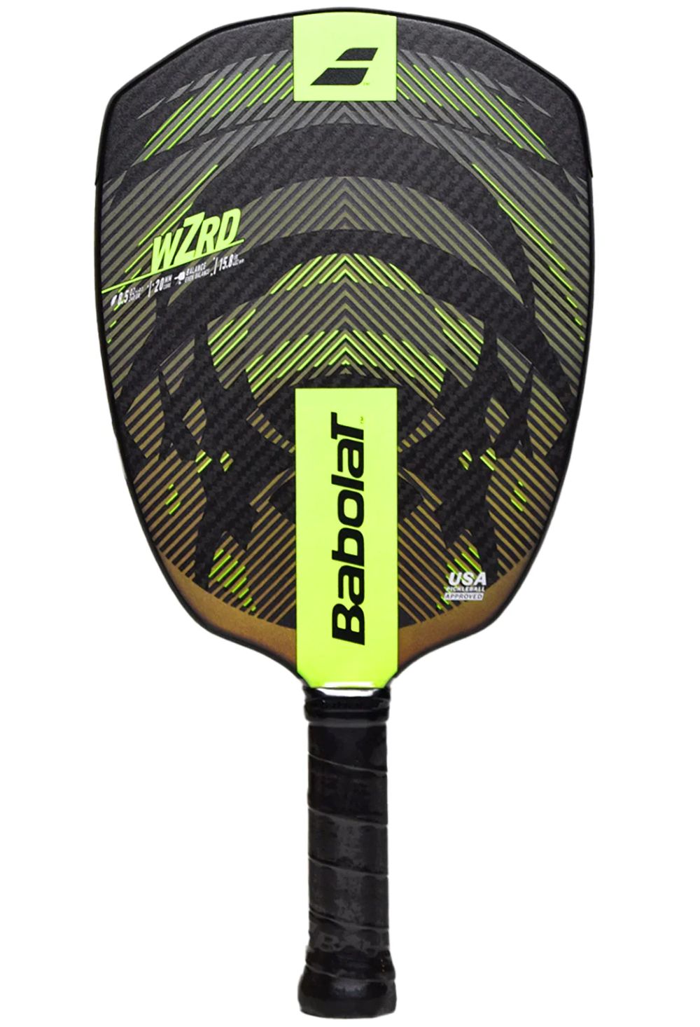 La Babolat WZRD GEN2 est une raquette de pickleball conçue pour les joueurs intermédiaires à avancés qui recherchent contrôle extrême, précision et effets. Sa forme shield (bouclier) et son épaisseur de 20 mm créent un large sweet spot, offrant un toucher exceptionnel et une grande constance dans les échanges.