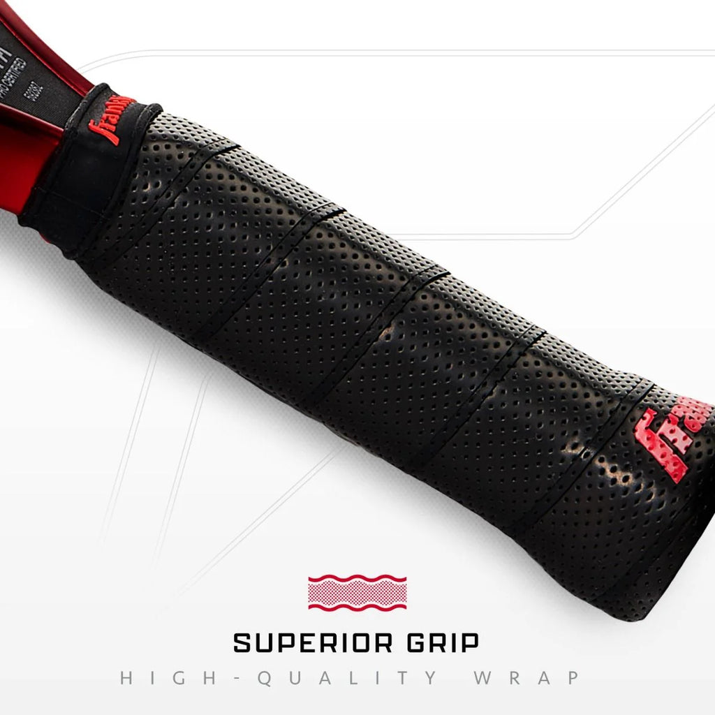 Le grip premium antidérapant améliore la prise en main et aide à absorber les vibrations, assurant confort et confiance lors des échanges intenses.